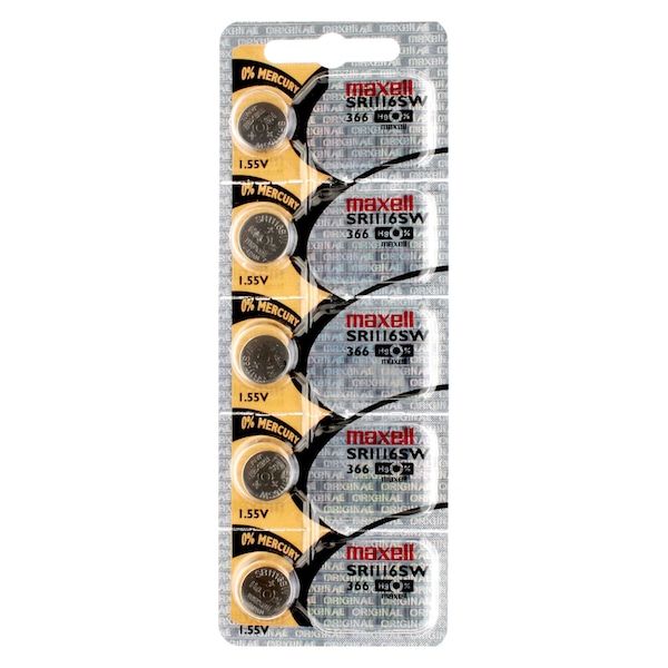5PK Maxell Silver Oxide SR1116SW Low Drain Watch Battery Replaces 365, 366, GP66, SP365, SP366, SR1116W, SR1116SW The SR1116SW, is a Silver-Oxide cell normally used in watches, with a shelf life of 5+ years. 5PK Maxell Silver Oxide SR1116SW Low Drain Watch Battery Also Known As: 608, 280-46, D366, 365, 366, GP66, SP365, SP366, SR1116W, SR1116SW, 366, RW318, 365, TR1116W, ZA, SR1116W, SR1116SW, WOS, V366 5PK Maxell Silver Oxide SR1116SW Low Drain Watch Battery Compatibility ENERGIZER: 366 DURACELL: D366 RAYOVAC: 366 VARTA: V366 RENATA: 366 : 608 CITIZEN: 280-46