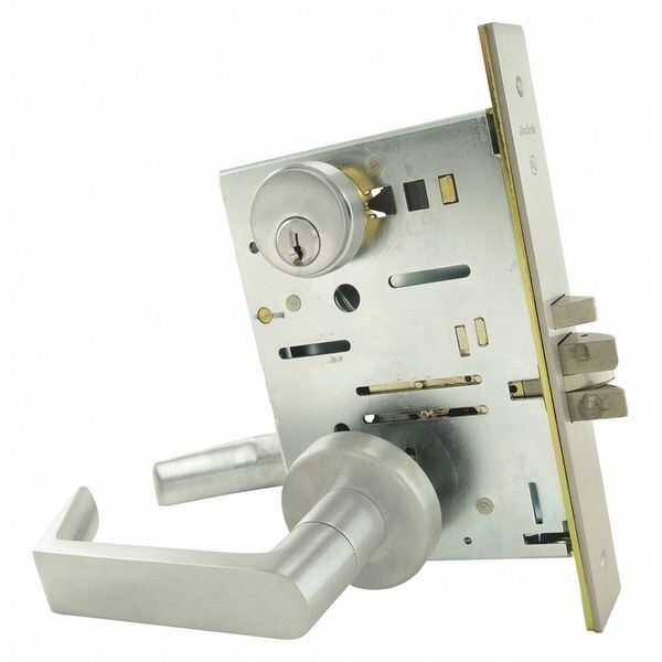 Mechanical, Lever, Mortise, Lockset Function Storeroom, Lockset Grade 1, Style Pennsylvania, Lockset Finish Satin Chrome, Keyway Type None, Key Type Keyed Different, Standards ANSI/BHMA A156.2-2003, ADA Compliant Yes, Lockset Fire Rating 3 hr, Ligature Resistant No, Cylinder Core Type Not Included, Features Non-Handed, For Use With Various Door Types, Handle Material Zinc, Steel, Includes Mounting Hardware, Item Door Lever Lockset, Key Material Not Applicable, Location Type Commercial