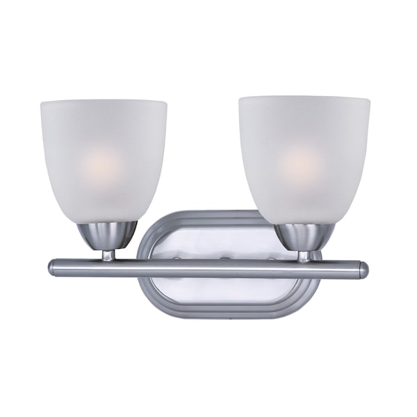 This transitional design works in any style home. Intersecting, rectangular tubing finished in your choice of Satin Nickel or Oil Rubbed Bronze gently curves to support simple line Frost glass shades.