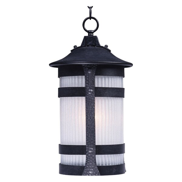 Old World styling in a durable die cast aluminum finished in Anthracite creates a forged iron look with a modern twist. The rustic look of the metal contrasts nicely with the light effect of the ribbed Constellation glass.