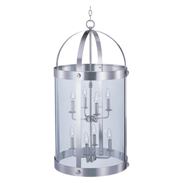Eight Light Satin Nickel Clear Glass Foyer Hall Pendant (Discontinued)
