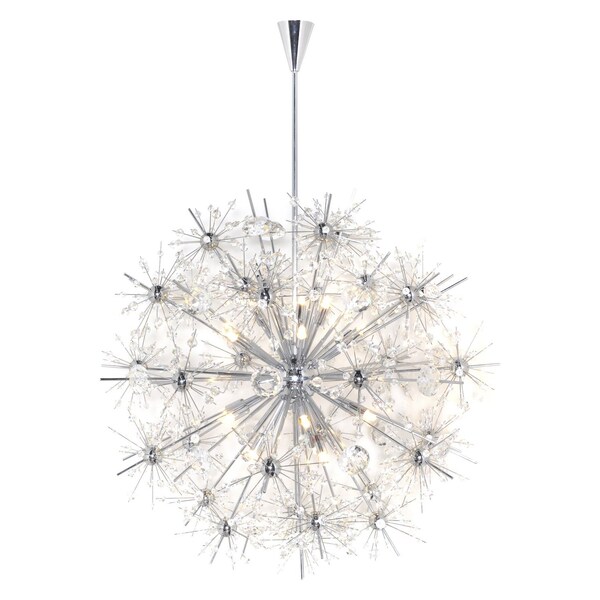 Spectacular display of Beveled Crystal beads of various sizes which are mounted on sculptures Polished Chrome metal formations which will sure to be the focal point of your room. The high power Xenon bulbs add sparkle to the crystal while producing a natural white light.