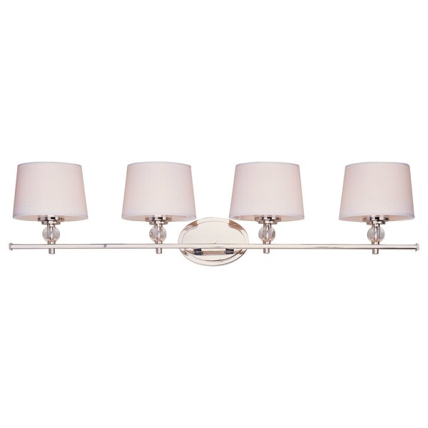Cool, clean and contemporary are just a few words to describe the Rondo collection. Rectangular arms are bent to form graceful curves and are finished in Polished Nickel. The sharpness of the frame is softened with the use of round crystal glass balls. The White fabric shades are fit with white diffusers that evenly light the room.