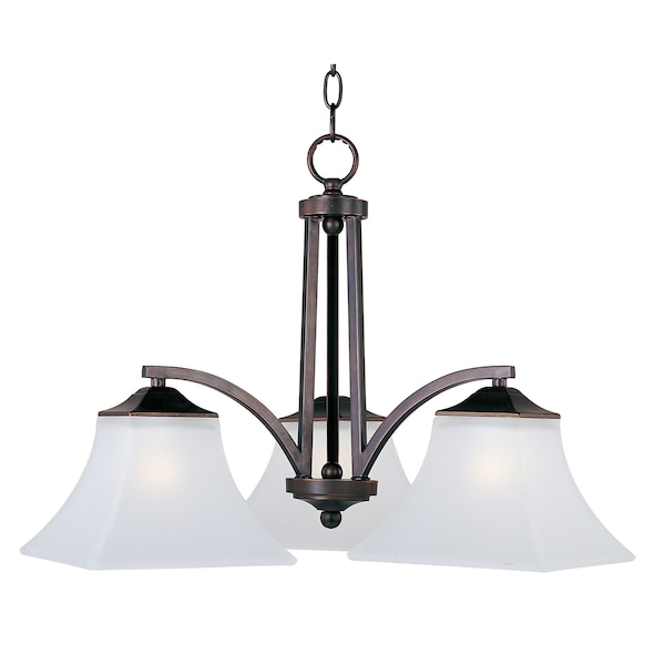 Straight lines and curves make this contemporary series a classic. Square metal tubing finished in your choice of Oil Rubbed Bronze or Satin Nickel support tapered square Frosted glass shades.