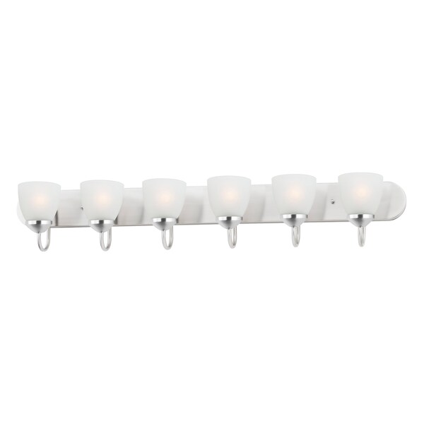 This transitional design works in any style home. Full length oval backplates support simple bell-shaped, Frosted glass shades. Available in Satin Nickel, Matte Black, and Polished Chrome.