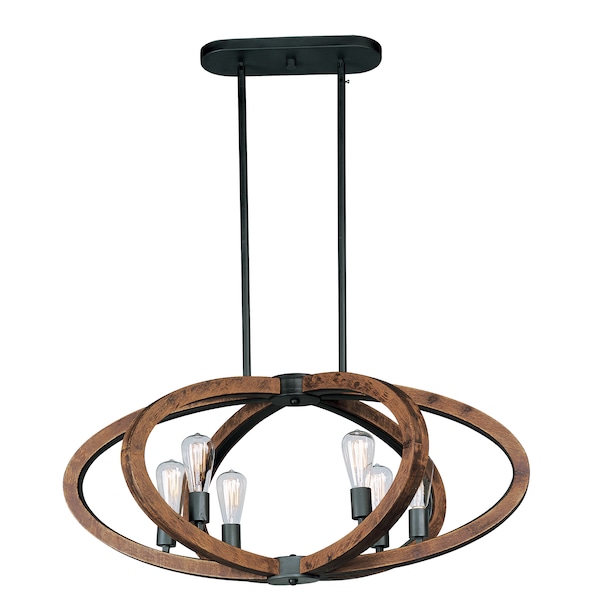 Rings of Ash wood are distressed and then finished In Antique Pecan for that old world feel. Metal accents finished in Anthracite provide a forged iron appearance that complements this rustic design.