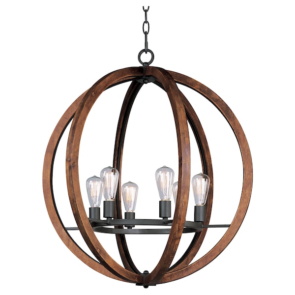 Rings of Ash wood are distressed and then finished In Antique Pecan for that old world feel. Metal accents finished in Anthracite provide a forged iron appearance that complements this rustic design.