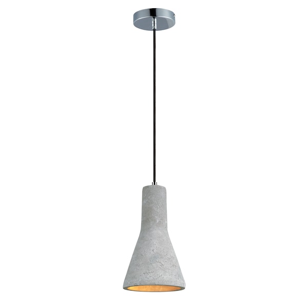 Pendants molded in natural Gray finish concrete cement provide a unique urban contemporary design element Metal Polished Chrome hardware contrasts beautifully with the black fabric covered wire. Powerful and efficient illumination is provided by included GU10, 3000K LED bulbs.