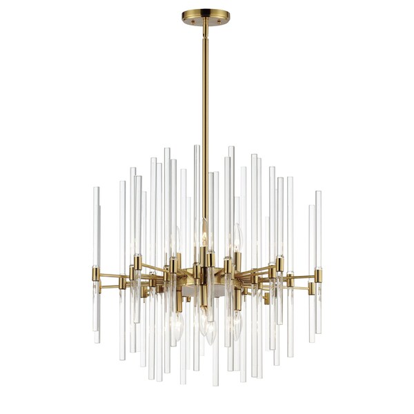 The composition of Clear glass rods are elegantly supported by thin radial arms of staggered lengths to create an iridescent motif that is truly Divine. Finished in Polished Nickel or Heritage Brass, the simplicity of this design delivers a crisp lighting fixture that works in a multitude of interior aesthetics from contemporary to traditional.