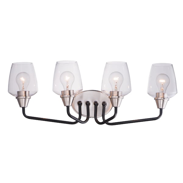 Goblet 4-Light 26.25" Wide Black / Satin Nickel Vanity Light