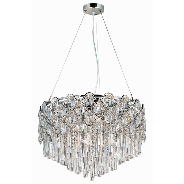 Definitely not your grandmother's crystal, the Jewel Collection transforms an elegant gem into a bold design formed of bent steel, undulating patterns, and a Polished Chrome finish. The substantial Beveled Crystals sparkle like jewel pendants, while the internal crystal beads delicately reflect the light from the xenon lamps included with each fixture.