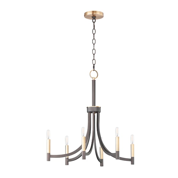 This transitional style chandelier collection features sweeping rectangular arms that transitions to a simple tubular candles. Available in Bronze with Antique Brass accents or all Satin Nickel for a more modern approach.