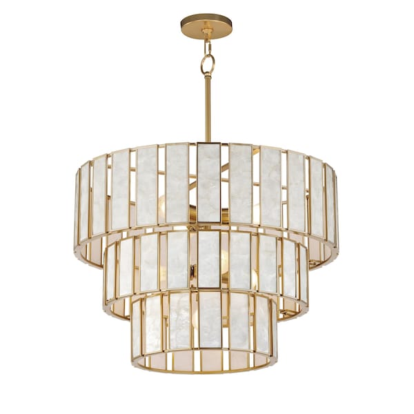 - •Capiz and natural aged brass finish chandelier from the Miramar collection
