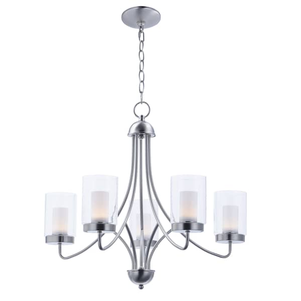 A contemporary design featuring a Satin Nickel frame supporting Clear cylinder glass shades with Frost interior diffusers all powered with energy efficient LED technology. Finally LED technology at an affordable price.