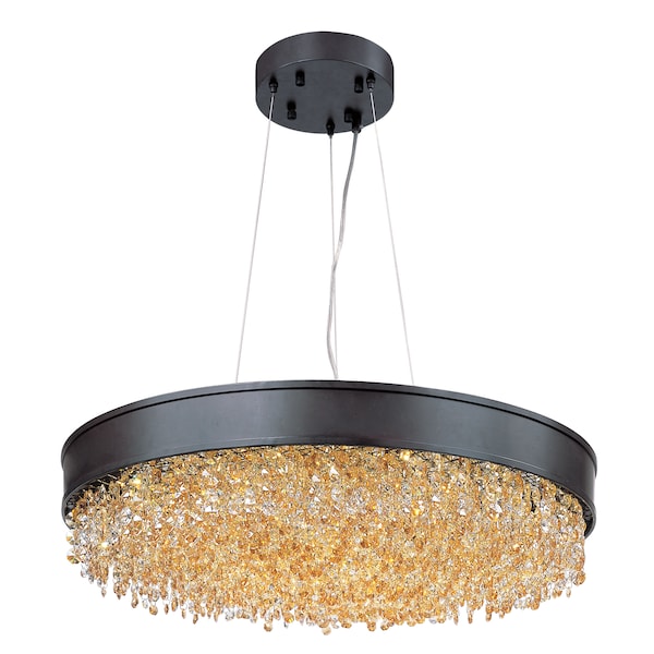 A sea of crystal strands suspend from within drums of steel which are finished in your choice of Bronze with Scotch crystal or Polished Chrome with Mirror Smoke crystal. Hidden inside the drum is a powerful dimmable LED source which has the crystals dancing in the night without any glare in your eyes.
