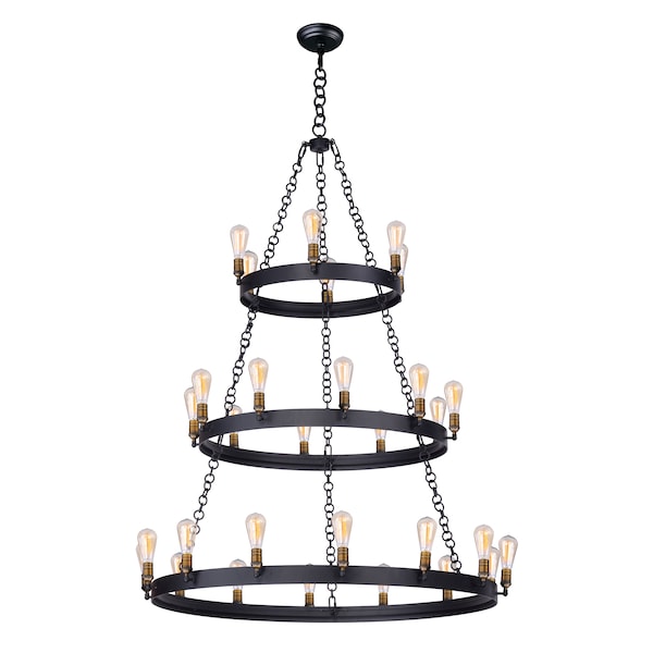 Noble 30-Light 50" Wide Black / Natural Aged Brass Chandelier