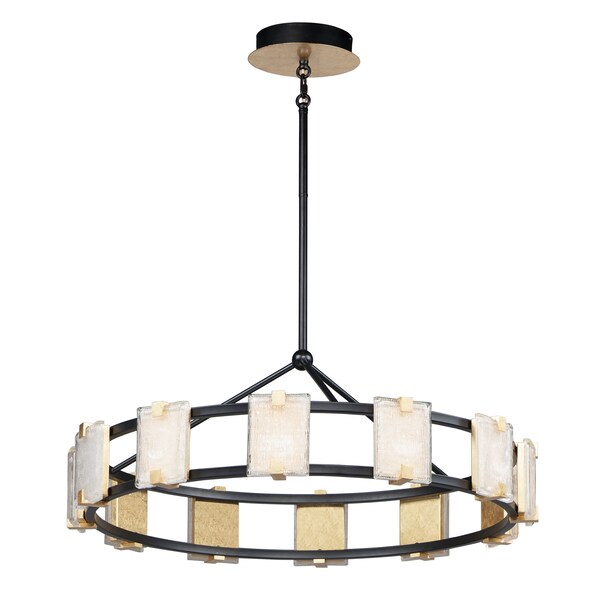 Piastra style glass diffuses integrated LED to shimmer radiantly. Suspended on a Black frame with Gold Leaf accents, this perfect blend of contemporary and traditional design adds glamour to a broad spectrum of design aesthetics.
