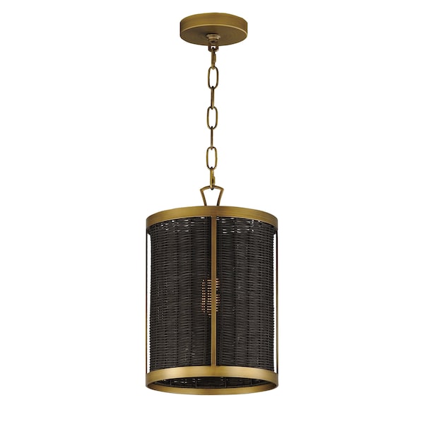 Rattan 1-Light Pendant, Natural Aged Brass