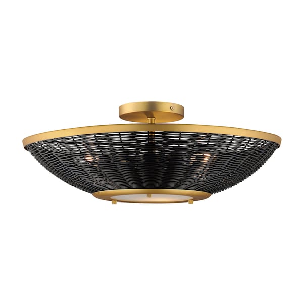 Rattan 20'' Wall Sconce/Semi Flush Mount, Natural Aged Brass