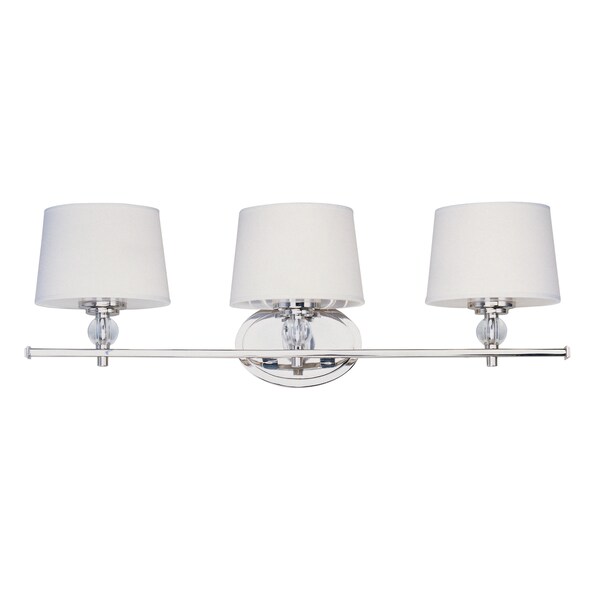 Cool, clean and contemporary are just a few words to describe the Rondo collection. Rectangular arms are bent to form graceful curves and are finished in Polished Nickel. The sharpness of the frame is softened with the use of round crystal glass balls. The White fabric shades are fit with white diffusers that evenly light the room.