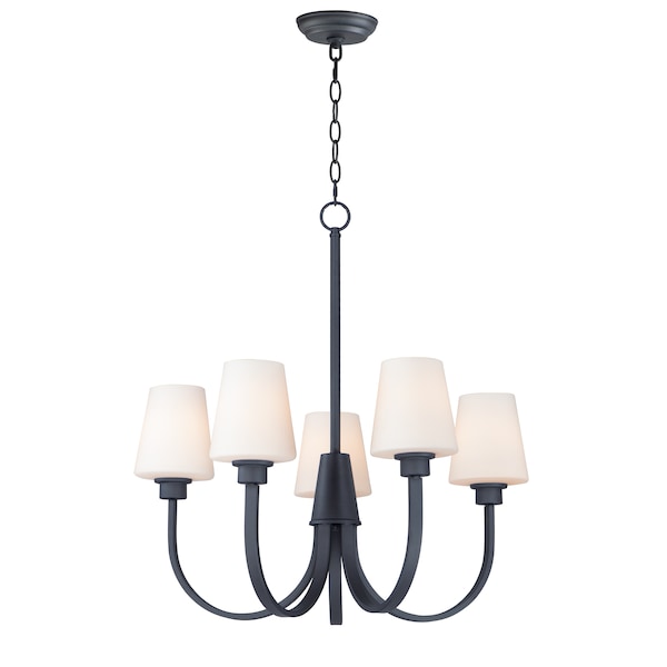 Graceful arcs of rectangular tubing transition to round cups that support tapered Satin White glass shades creating a crisp and clean transitional design. The frame is finished in your choice of Satin Nickel or Black which bridges modern and transitional design aesthetics.