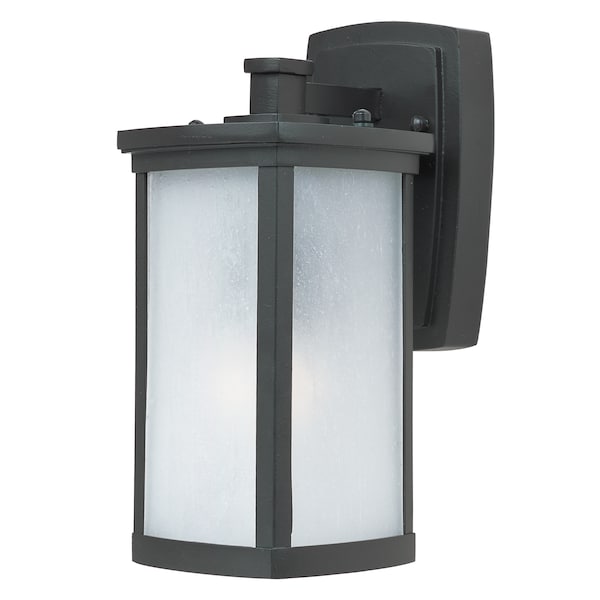 Simple lines create a transitional style that fits a wide variety of exterior home design. Available in both Platinum or Bronze finish, Frosted Seedy or Clear Ribbed glass, or fluorescent, incandescent or LED lamping.