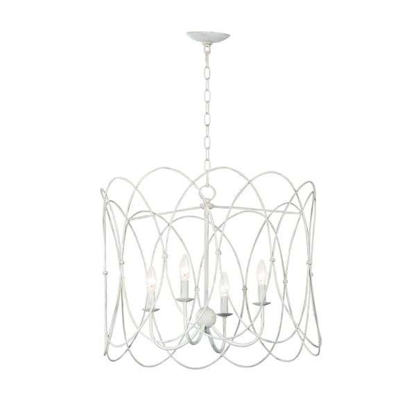 Woven wire frames intersect to create a gentle, yet stylish pattern. A Weathered White finish is used to give the design a light and airy feel which would be at home at the beach as well as in the country.