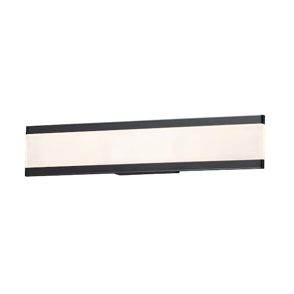 Dual Black aluminum channels support a Frost acrylic diffuser that projects light into the room when illuminated. Available in 4 lengths, this collection can be installed horizontal above the mirror or vertical on each side.