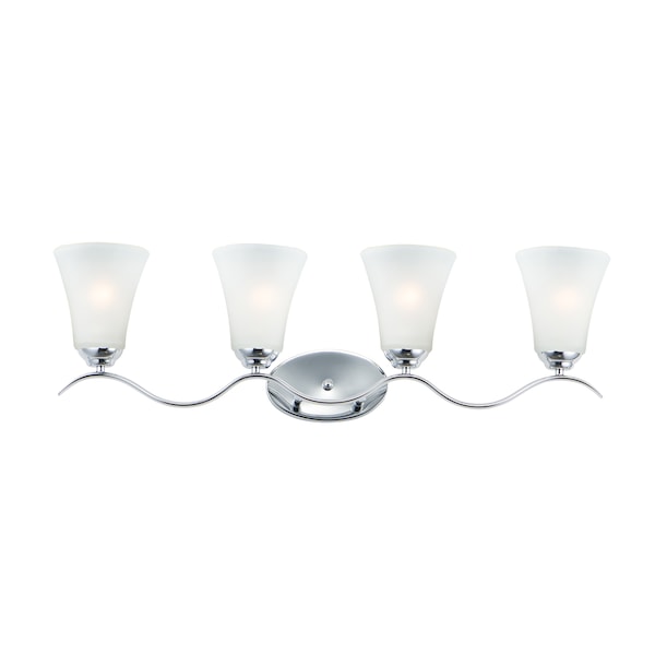 Gently waving arms of Satin Nickel or Oil Rubbed Bronze support tall-profile Frosted glass shades creating a scale normally not found in this category of lighting. The bath vanity may be installed up or down and also includes a Polished Chrome finish.