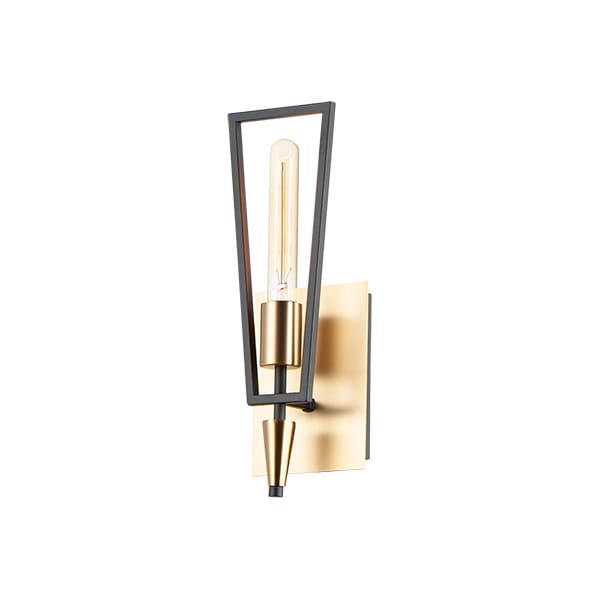 Sharp lines radiate from a pointed pin central body creating geometric angled wings that are sandwiched between matching conical fonts. Finished in a combination Antique Brass and Black, this collection is both contemporary and warm. Complete this look with vintage T10 light bulbs to for the full effect.