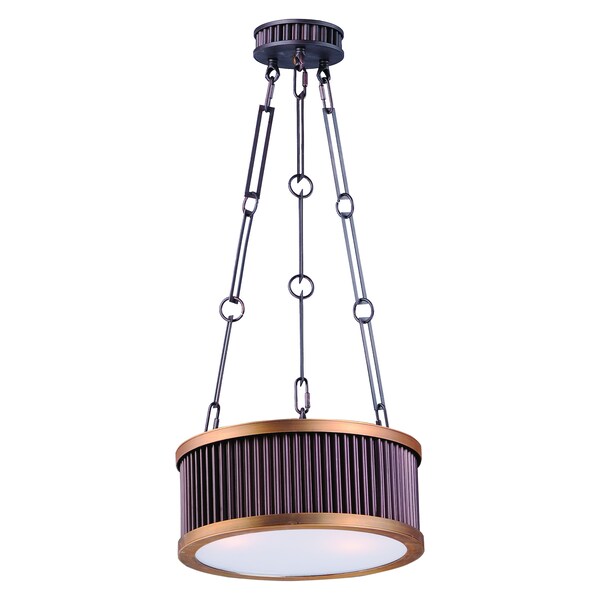 Ribbed metalwork is framed in drum or square formed options available in both ceiling mounts and pendants. The two-tone finish of Oil Rubbed Bronze with Burnished Brass frame offers classic styling while Weathered Zinc with Matte Satin Nickel offers a more country elegant option. The incandescent lighting is softly diffused through a frosted glass diffuser.