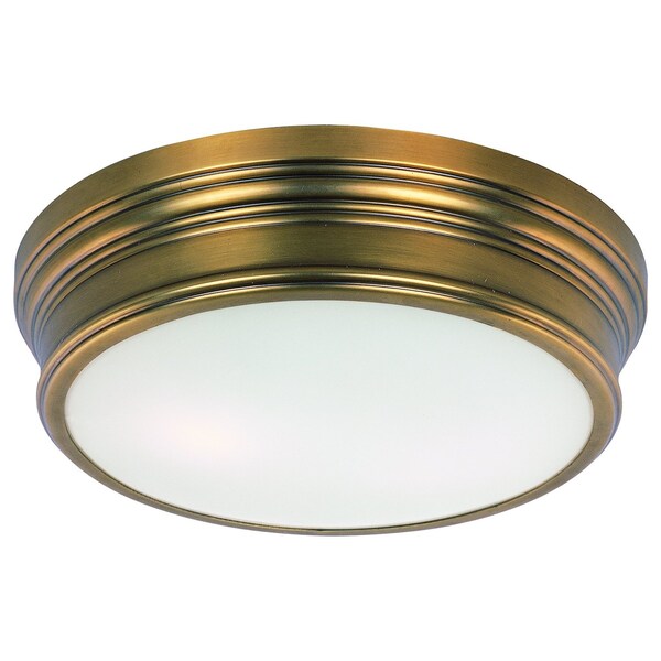 Two Light Satin White Glass Natural Aged Brass Drum Shade Flush Mount (Discontinued)
