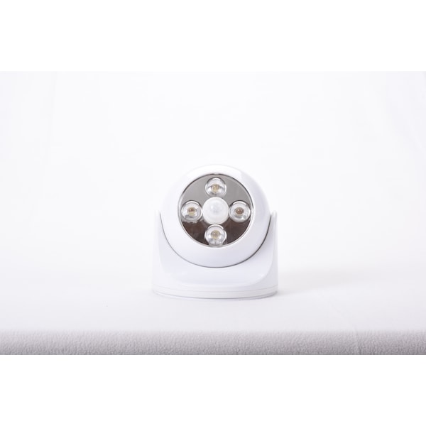 Add extra light to decks, steps, pathways, and more. Super bright 220 lumen light increases visibility up to 150 feet. Wireless and weatherproof, it's great for indoor or outdoor use. Now linked so when one turns on, all can turn on. Light up your house, driveway or backyard. 360 degree adjustable swivel head with sensor mounts anywhere. Wireless light uses 4 D-cell batteries. Batteries last a year under normal usage. Built-in motion sensor automatically turns on when movement is detected within 25 feet. 4 bright LEDs last for 30,000 hours, making this great for paths, steps, porches, sheds or anywhere you need more light. White.