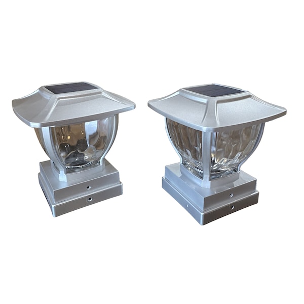 Solar Post Cap & Deck Railing Lights, Metallic Silver, 2PK