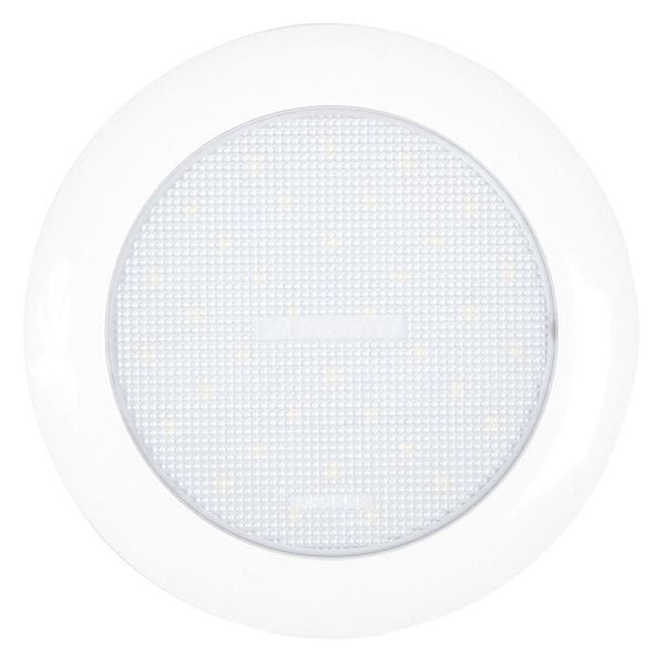 Courtesy Light, Shape Round, Operating Voltage 12.8V DC, Lens Color White, Overall Diameter 5 11/16 in, Maximum Brightness 450 lm, Electrical Connection Blunt Cut Wires, Overall Length 5 11/16 in, Includes Electrical Connection Electrical Connection Not Included, Overall Width Not Applicable, Overall Height 3/8 in, Compatible Electrical Connection Manufacturer Model Number Not Applicable, Mount Style Surface, Mount Type Screw, Standards Not Applicable, Series Not Applicable