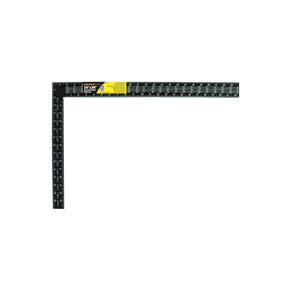 The Mayes 16 inch x 24 inch black steel rafter square is the perfect tool for laying out and cutting rafters, roof construction and verifying squareness. It is constructed of high grade steel with a high-visibility powder finish and includes rafter, brace and Essex tables. Thermo-bonded embossed graduations are in 8ths, 10ths, 12ths and 16th with English and metric markings.