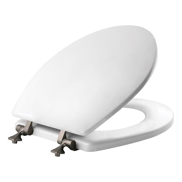 This enameled wood seat provides durability and stability. The brushed nickel metal hinges are stylish and long-lasting. With the STAY TITE Seat Fastening System, the seat does not shift around and stays firmly attached to the toilet.