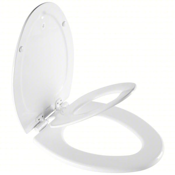 Toilet Seat, For Bowl Shape Elongated, Toilet Seat Type Standard, Front Type Closed, Includes Cover Cover Included, Color White, Hinge Material Plastic, Stainless Steel, Hinge Design Slow Close, Seat Height 2 3/16 in, Seat Material Plastic, Bolt to Seat Front 18 1/16 in to 18 9/16