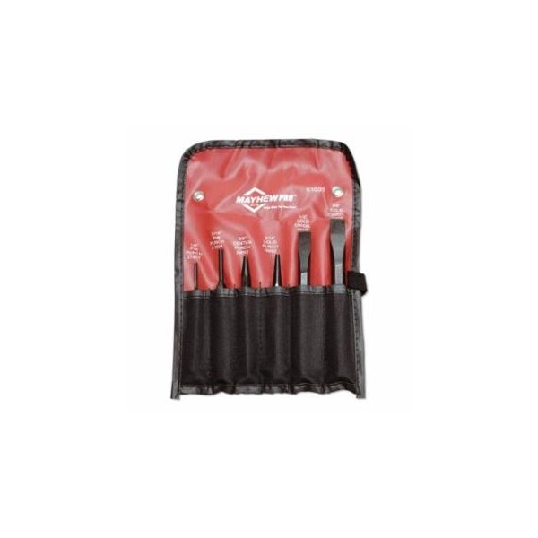 6 Pc Punch & Chisel Kits, Round, Beveled, , Pointed, English, 4 Punches, 2 Chisels