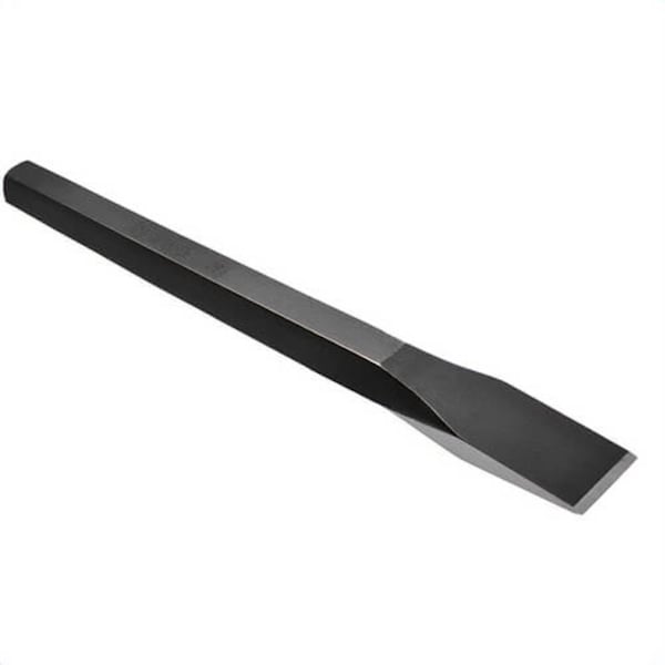 Mayhew chisel cold open, beveled tip, 1/2 in tip, hex stock, 7/16 in stock, alloy steel tip, 1/2 in blade width, 9 in OAL, alloy steel, black oxide.