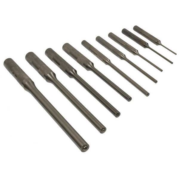 Roll Pin Punch Set, Set Type Punch Set, Types Included Pilot Punch, Number of Pieces 9, Includes Handle No, Includes Handguard No, Material Applications Metal, Stainless Steel, Overall Length 2 3/4 in, 3 1/4 in, 3 1/2 in, 4 in, 4 1/2 in, 5 in, 5 1/2 in, 6 in, Includes 1/4 in x 5-1/2 in, 1/8 in x 4 in, 3/16 in x 4-1/2 in, 3/32 in x 3-1/2 in, 5/16 in x 6 in, 5/32 in x 4-1/2 in, 5/64 in x 3-1/4 in, 7/32 in x 5 in, Pilot Punch: 1/16 in x 2-3/4 in