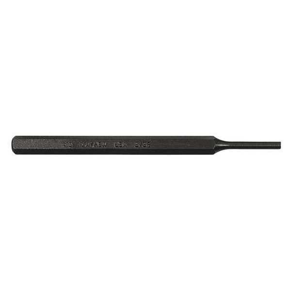 Pin Punch, Automatic No, Punch Type Pin Punch, Tip Size 5/32 in, Tip Type Flat, Shank Shape Hexagon, Shank Width 5/16 in, Grip Style Plain, Hole Diameter 5/32 in, Overall Length 5 in, Container Type Bulk, Material Applications Metal, Includes Striking Cap No, Measurement Type SAE, Includes Handguard No, Taper Length 1 1/4 in, Tether Ready No, Includes Handle No, Corrosion-Resistant Yes, Features Pin Punches are Used to Drive Out and Remove Loosened Pins and Key, Finish Black Oxide, Insulated No