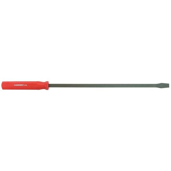 Screwdriver Handle Pry Bar, Type Screwdriver Style, End Style Chisel, Bar Width 1/2 in, Overall Length 25 in, Number of Nail Slots 0, Bar Shape Square, End Angle Style Straight, End Width 1 1/8 in, Tether Ready No, Bar Color Black, Bar Material Steel, Features Black Oxide Finish is Applied for Rust Protection, Handle Provides Comfort and Strength, Screwdriver Style Pry Bars, Finish Black Oxide, Handle Color Red, Includes Handle Yes, Standards ANSI, Weight 1.5 lb