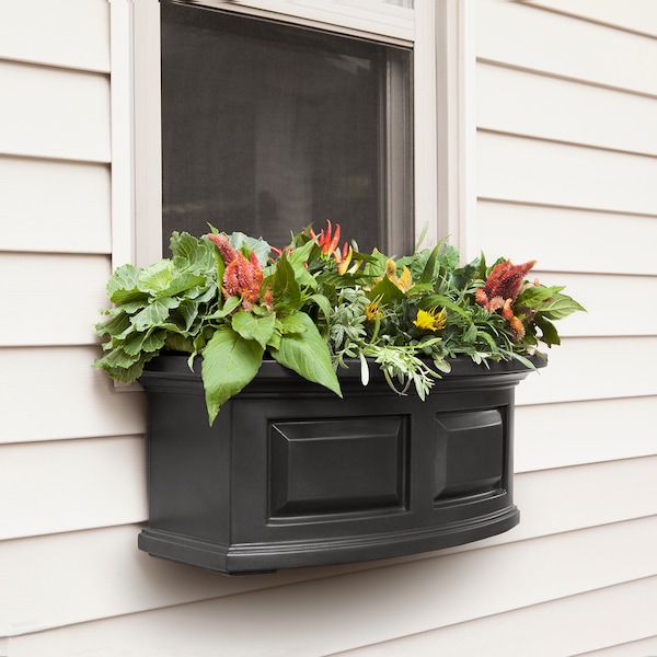 The MAYNE brand Nantucket Window Box 2' is a black window box with a size of 2 feet.