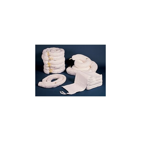 Oil Absorbent Boom, 32 Gal. Absorbency, 10 ft, White, 4PK