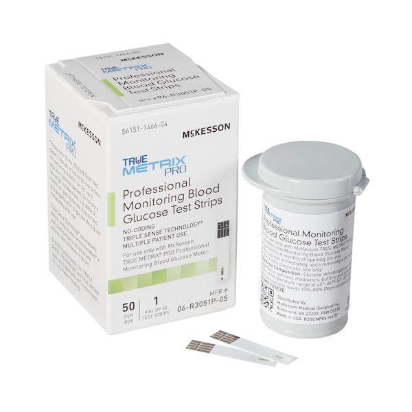 For use with #06-RE4051P-00 McKesson TRUE METRIX PRO, and #06-R5051-1, #06-R5051-2 and #06-R5051-3 McKesson TRUE METRIX Controls Includes Test Strips and Instructions for Use