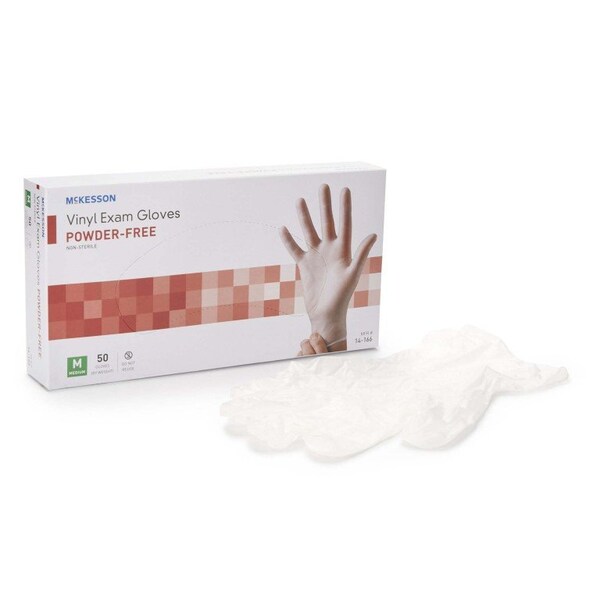 Exam Glove McKesson Confiderm Medium NonSterile Vinyl Standard Cuff Length Smooth Clear Not Rated McKesson vinyl exam gloves are single-use and disposable to prevent cross-contamination The clear exam gloves are latex- and powder-free to be gentle against sensitive skin A standard beaded cuff allows for quick and easy removal and reduces drips to the forearm The smooth inner and outer surface and a polymer coating increase comfort and tactile sensitivity McKesson Confiderm gloves are ambidextrous for faster donning on either hand Dispensing is convenient with the curved opening on the box