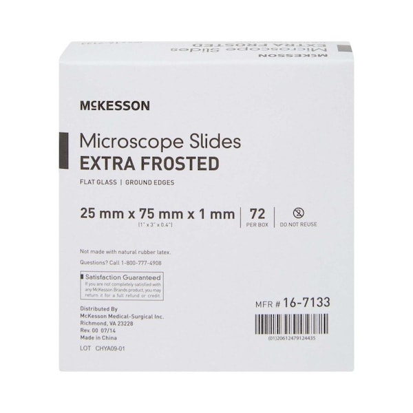 Microscope Slide McKesson 1 X 3 Inch X 1 mm Extra-Frosted End Extra-frosted 3 inches x 1 inch x 1 millimeter Economy slides designed to meet the needs of a variety of applications Ground edges