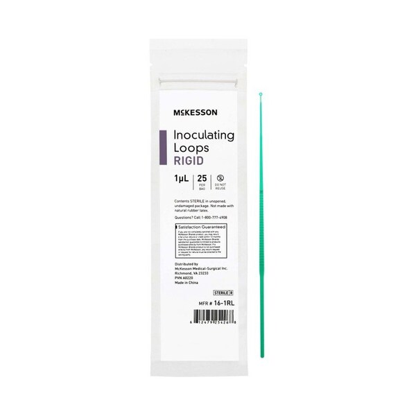 Inoculating Loop McKesson 1 uL Polystyrene Integrated Handle Sterile Disposables for collection and inoculation by streaking or puncturing methods Smooth construction facilitates uniform streaking of culture media Loop combinations have an integrated loop/needle design, eliminating the need for a separate needle Rigid feel media type Integrated handle Sterilized by gamma irradiation There are 25 calibrated inoculating loops in a tamper-evident resealable bag