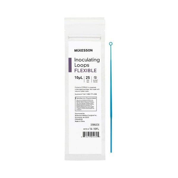 Inoculating Loop McKesson 10 uL High Impact Polystyrene Integrated Handle Sterile Disposables for collection and inoculation by streaking or puncturing methods Smooth construction facilitates uniform streaking of culture media Loop combinations have an integrated loop/needle design, eliminating the need for a separate needle Flexible feel media type Integrated handle Sterilized by gamma irradiation Light blue There are 25 calibrated inoculating loops in a tamper-evident resealable bag